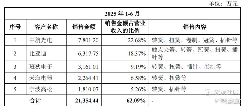 触点夹簧类产品销售金额及占当期主营业务收入的比例逐年提高,最近一期比例为17.91%。