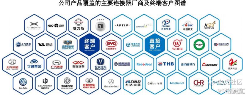 公司自2015年开始批量供应国内新能源汽车高压大电流连接器龙头中航光电,相继成为安费诺(AMPHENOL)、安波福(APTIV)、立讯精密、永贵电器、瑞可达、沃尔新能源、天海电器、华旃航天、宁波高松等连接器行业头部企业的供应商。此外,公司还是比亚迪的一级供应商。