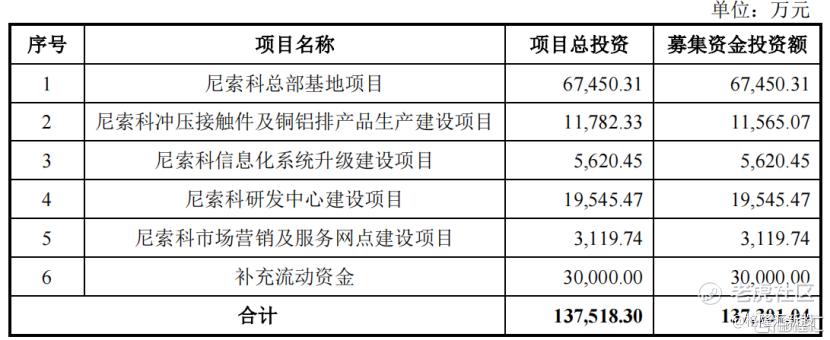 尼索科此次计划募资13.73亿元,主要用于投资总部基地项目、冲压接触件及铜铝排产品生产建设项目、研发中心建设项目、补充流动资金等。