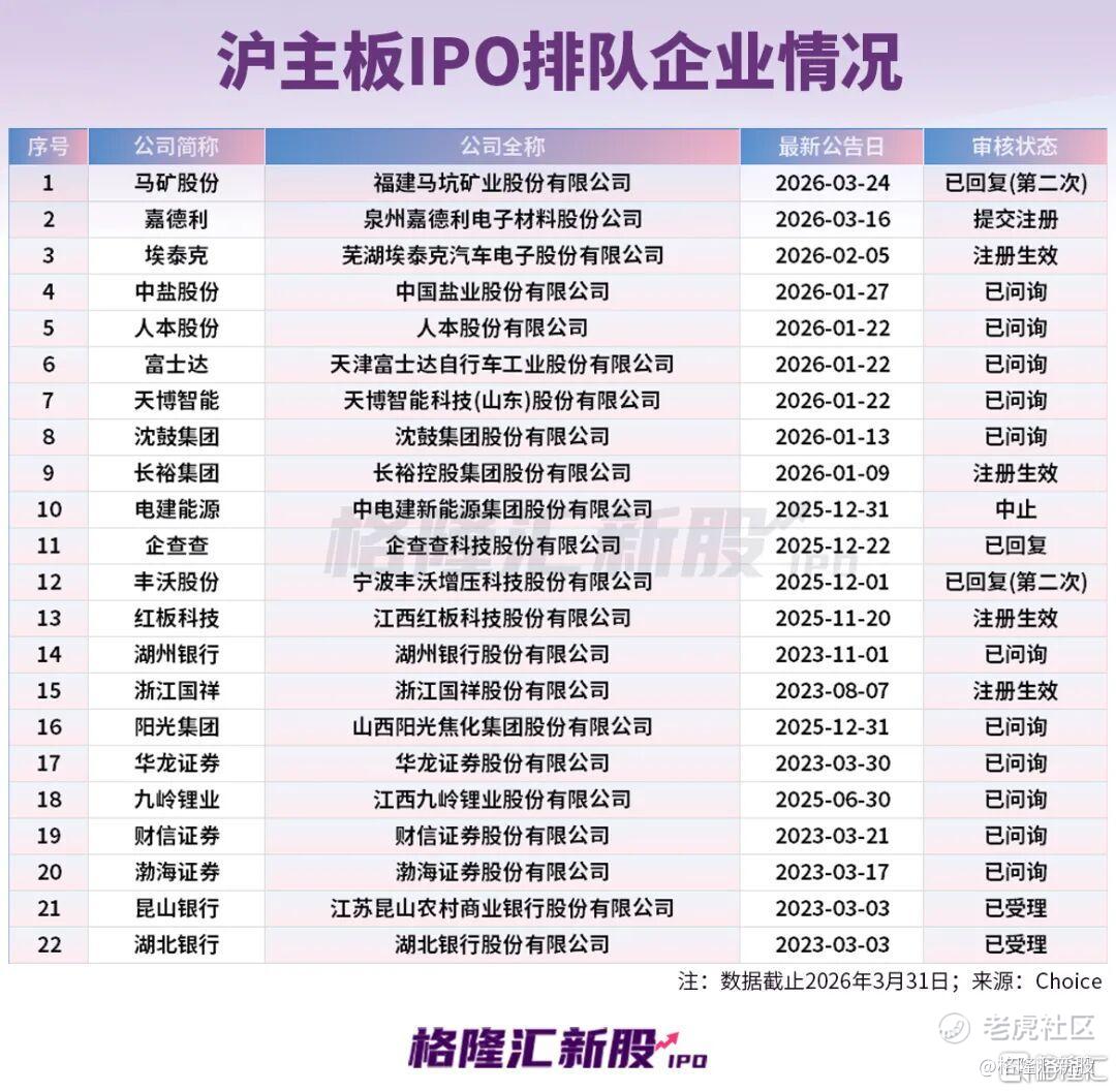 下面是A股各版块详细IPO排队名单: