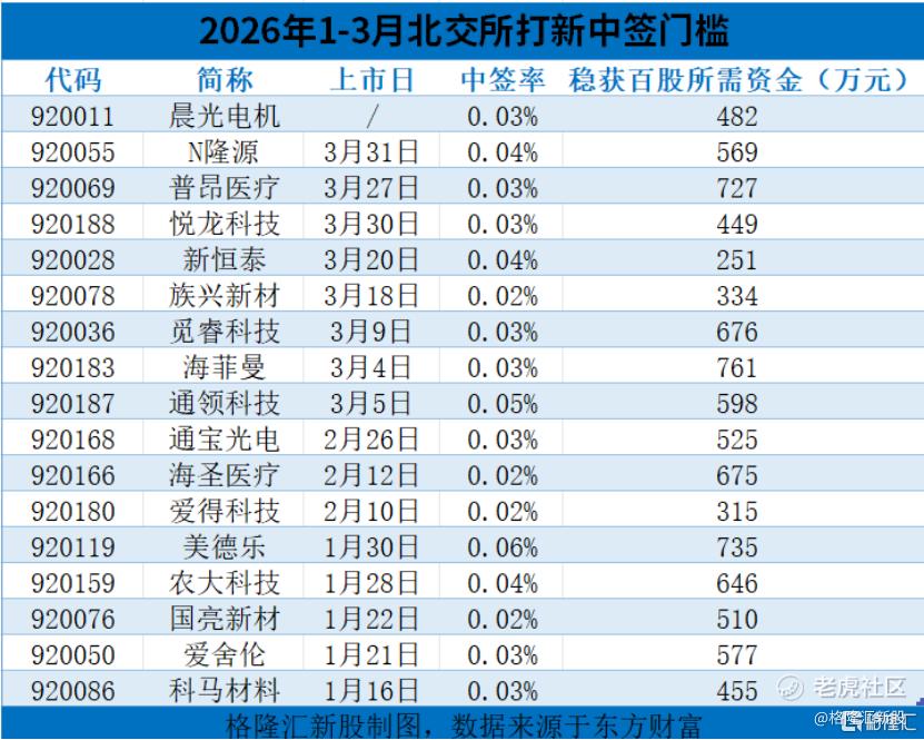 从上市板块来看,2026年1-3月登陆A股的30家公司中,有16家在北交所上市,可见北交所的上市新股已经占据半匹江山。但北交所的新股可不是那么好中的,资金不多的话,即使参与打新,大概率也是陪跑。