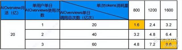 谷歌AI Overview tokens调用量估算 (来源:非凡产研)