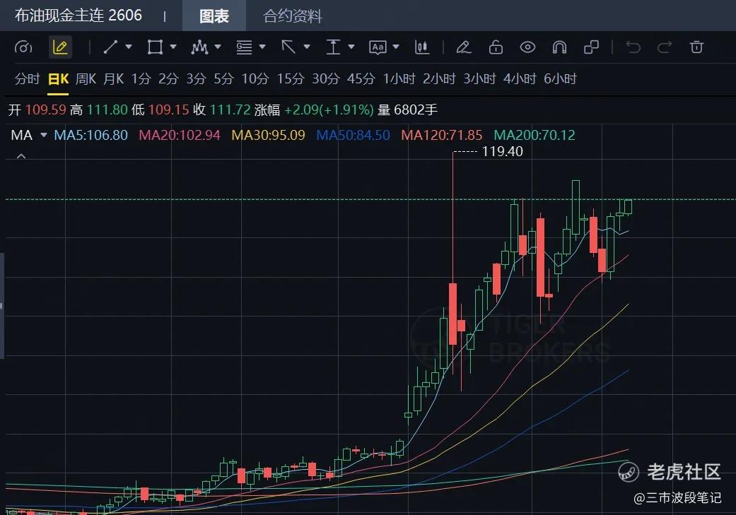 Brent原油期货价格约111.5美元、WTI原油期货价格约115.9美元,这说明市场还没有把很快彻底降级 fully price in。