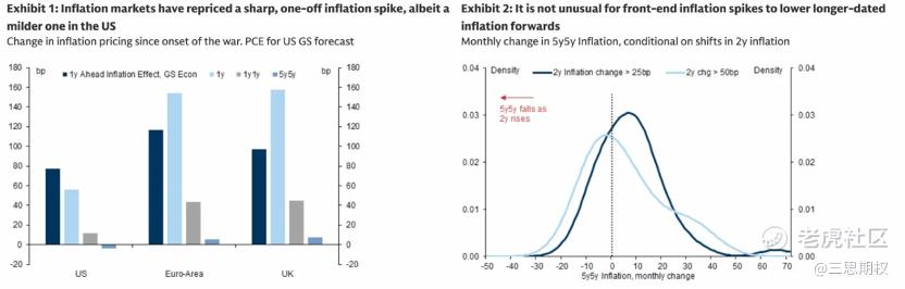 (Year/1-Year Forward Inflation Swap Rate衡量从1年后开始,再往后12个月内,市场预期的平均通胀水平,回答的问题是:等这波冲击的直接影响消退之后,通胀会停留在哪里?美国的5y5y自开战以来变化实际上是负值)