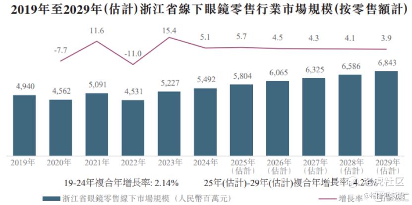 2024年浙江省线下眼镜零售市场规模约54.92亿元,预计到2029年将增长至68.43亿元,预计2025年至2029年的复合年增长率约4.2%。