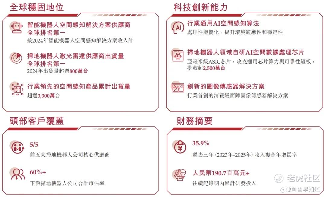 于2024年,按收入计,公司占全球空间感知解决方案市场份额约1.0%。自成立以来,累计出货量合共超过3,300万台。于2025年,激光雷达及线激光传感器总出货量分别超过1,000万台及500万台。