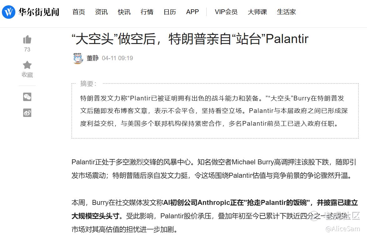 看新闻里说,Palantir与本届政府之间已形成深度利益交织,与美国多个联邦机构保持紧密合作,多名Palantir前员工已进入政府任职,这是直接变成同吃一锅饭的节奏啊。
