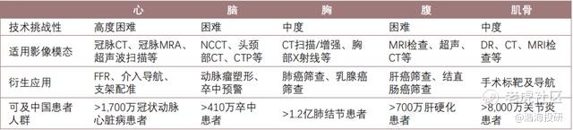 院内AI不同部位临床价值及技术壁垒 来源:数坤科技,头豹研究院