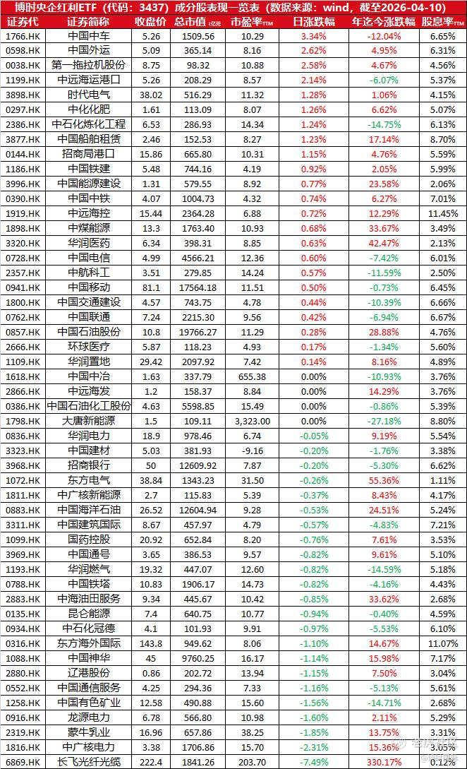 $博时央企红利(03437)$ 今年以来,国新港股通央企红利指数涨幅达+10.24%;本基金TTM股息率为6.65%
