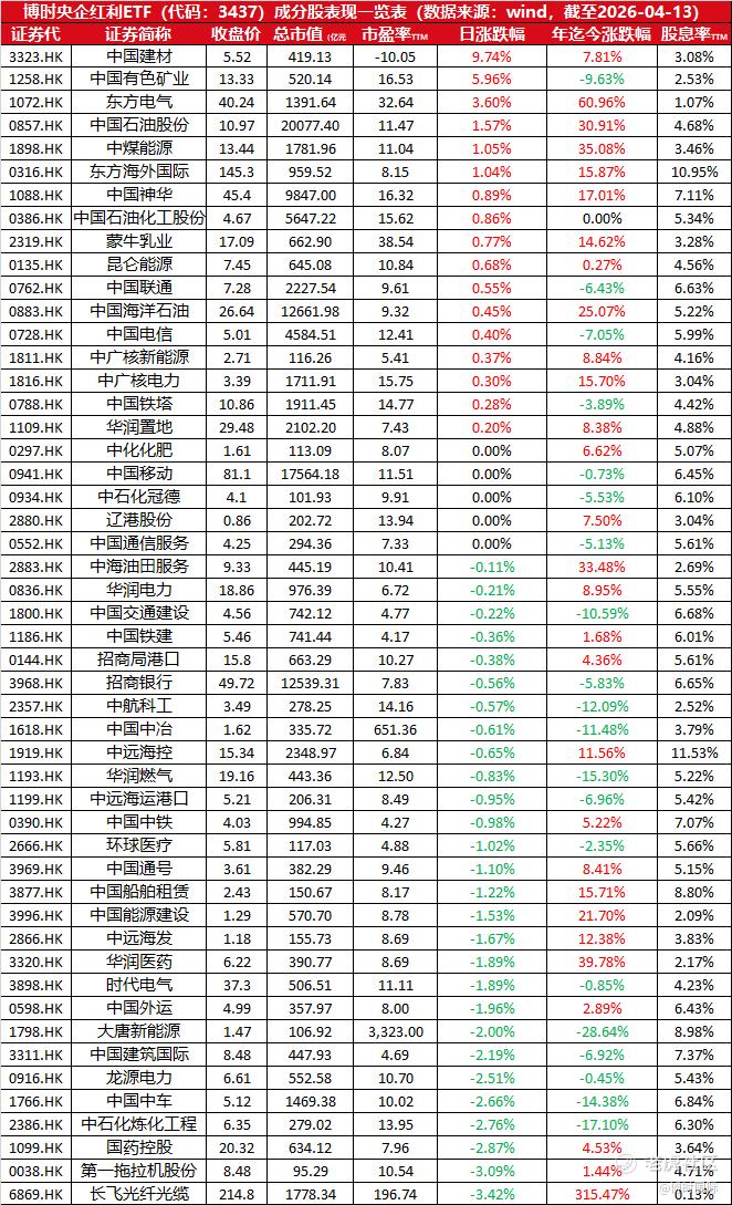 $博时央企红利(03437)$ 今年以来,国新港股通央企红利指数涨幅达+10.50%;本基金TTM股息率为6.61%