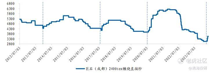 其实,但我们把时间线拉长,你会发现,从2022年下半年开始,受行业新增产能释放影响,玻璃纤维产品价格开始下滑。