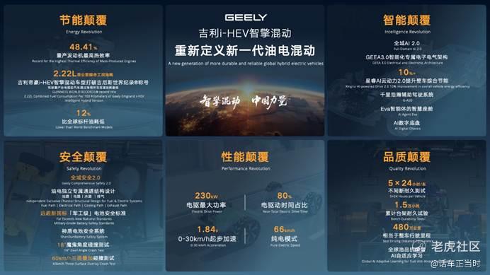 4月13日,吉利汽车正式发布全球新一代AI油电混动技术方案i-HEV智擎混动。该技术在吉利全域AI 2.0技术赋能下,深度融合全球顶尖的动力系统和行业前沿的三电技术,凭借低至2.22L实测百公里综合油耗、全球量产最高48.41%发动机热效率、首个HEV车型1级能效等,刷新行业多项纪录,全面颠覆传统油电混动技术。