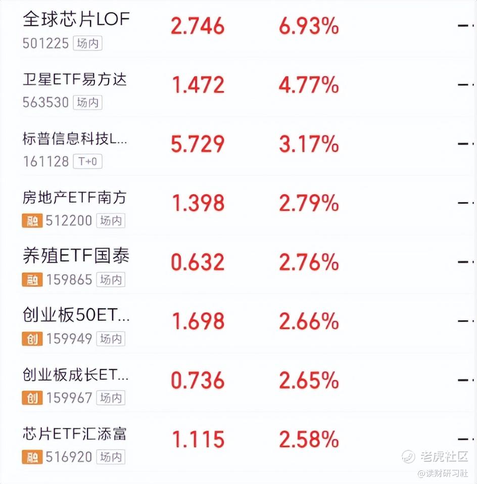 牛犇的ETF自选仓中,涨幅排名前列的都是芯片、科技等。