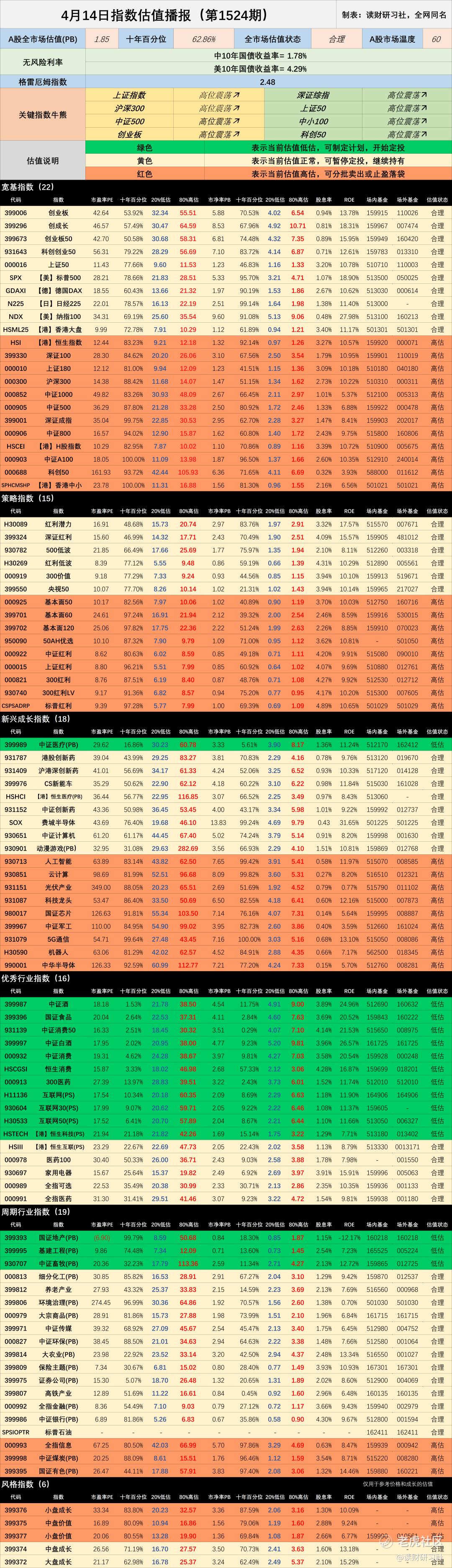 4月14日指数估值播报(1524期)