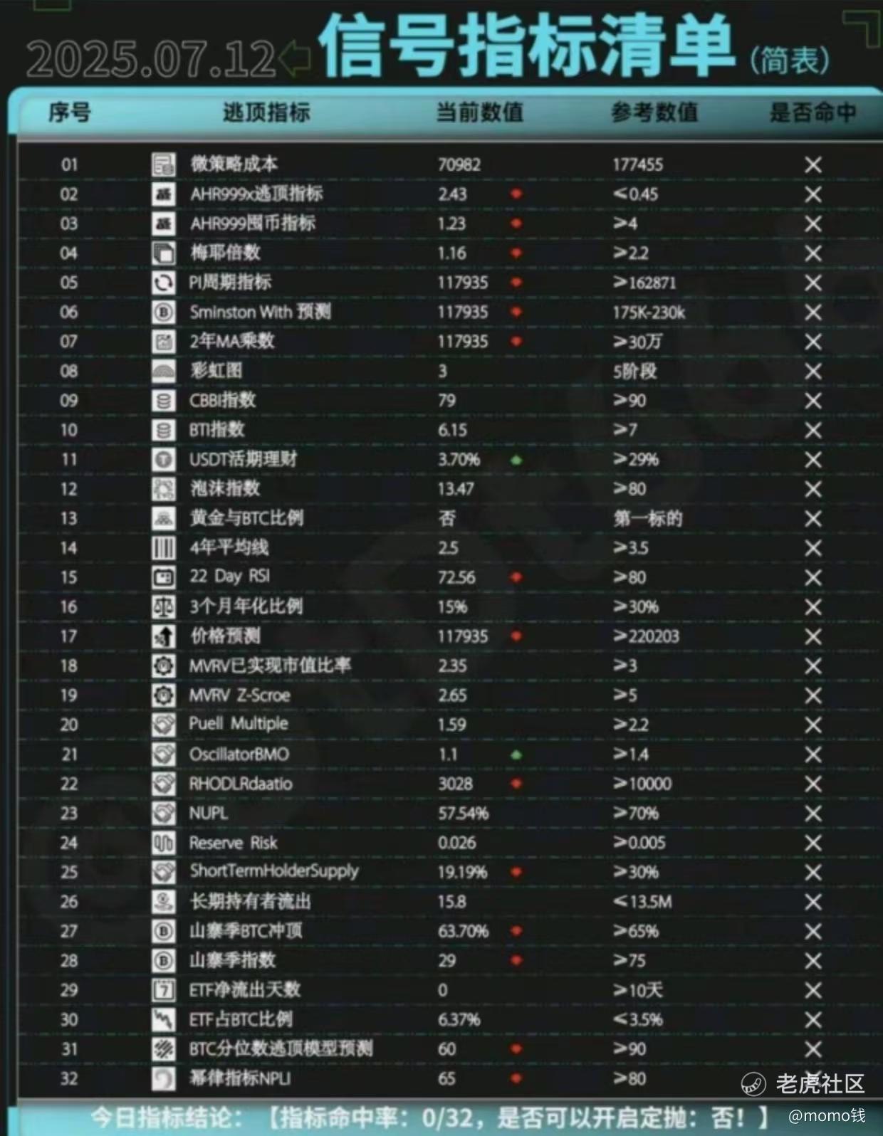 老师们,偶然翻到去年七月份的一张对大饼价格的指标图,虽然指标没有一个命中,但后续大饼确实又走熊了,这是不是说明现在大饼的生态位和以前不一样了呢?$Strategy(MSTR)$ $日日煮(DDC)$ $特斯拉(TSLA)$
