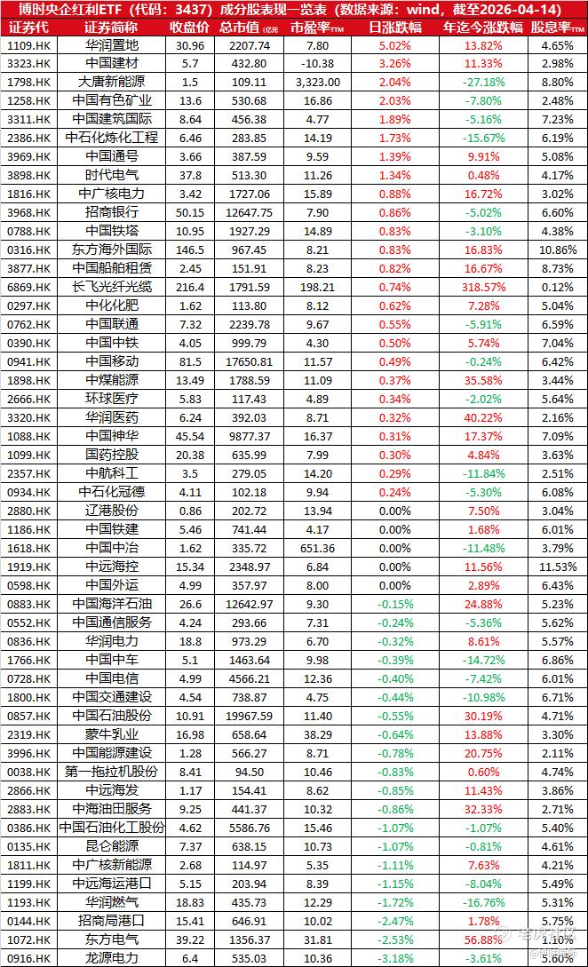 $博时央企红利(03437)$ 今年以来,国新港股通央企红利指数涨幅达+10.65%;本基金TTM股息率为6.60%