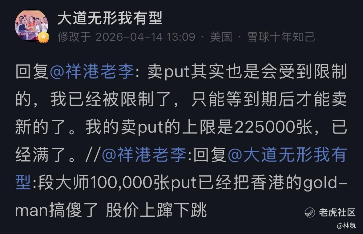 他原本也是希望多卖点 put 的,因为券商限制,所以才止步在 225000 张的。