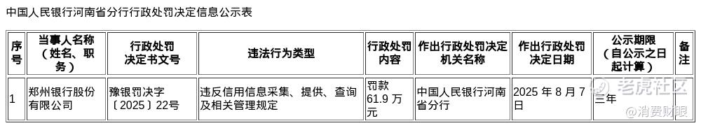 此外,2025年8月,郑州银行还因“违反信用信息采集、提供、查询及相关管理规定”,被中国人民银行河南省分行开出61.9万元罚款。 要知道,信用信息管理是包括信用卡在内信贷业务的基础合规要求,所以这一罚单意味着郑州银行在客户信息处理环节,当时仍存在一定的瑕疵。市场也质疑,在监管愈发严格的背景下,郑州银行的合规意识、合规管理等,到底是处在何种层面?