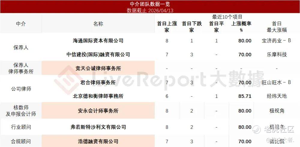 据**大数据统计,宜品营养中介团队共计8家,其中保荐人2家,近10家保荐项目数据整体表现尚可;公司律师共计2家,综合项目数据整体尚可。整体而言中介团队历史数据表现还好。