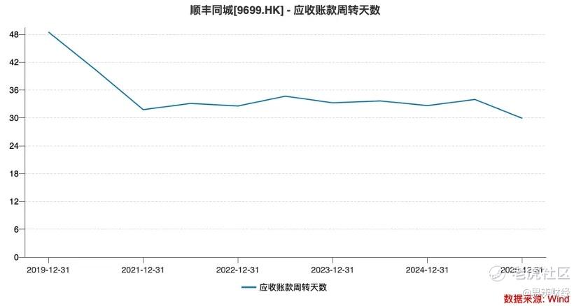 根据wind提供数据,2025年顺丰同城应收账款账期非但没有延长,相反较之上年还少了一天。