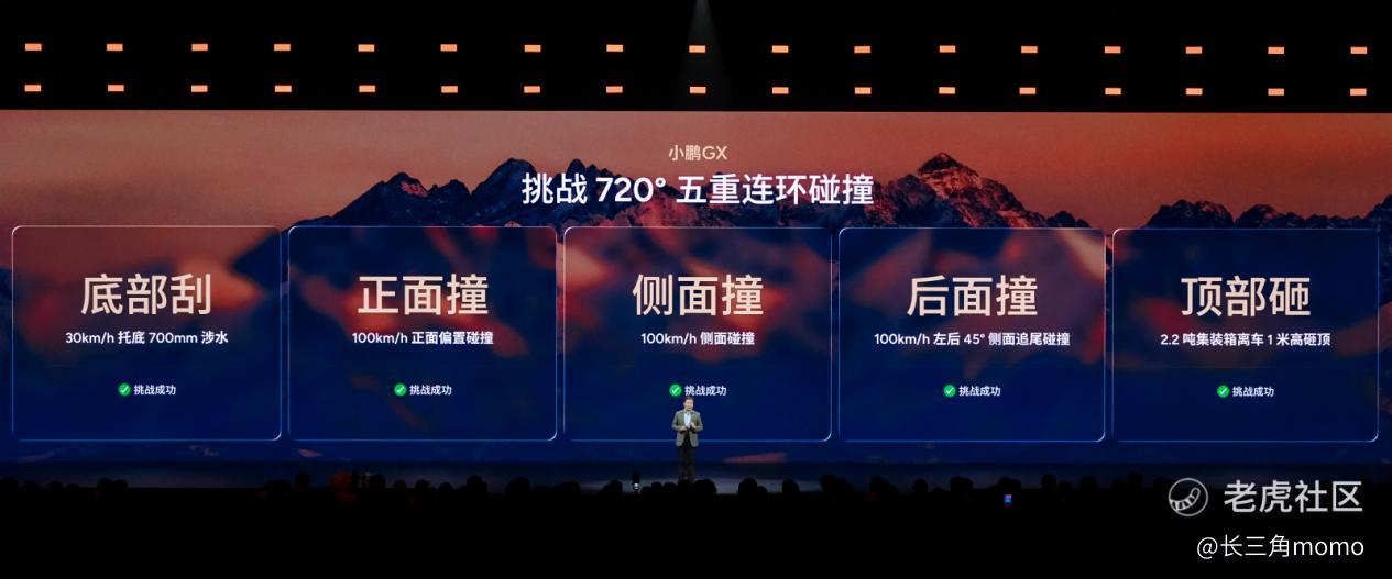 发布会现场,小鹏GX把四大安全测试在现场做了还原,央视主持人朱广权更是亲身参与测试,甚至当场加大难度,体验完以后,更直言小鹏GX是 “稳定的出行伙伴,非常靠得住”,为新车实力强势背书。小鹏将其命名为GX,既是对Great(伟大)与Xplore(探索)精神的极致诠释,更凝聚了小鹏对未来出行的思考。
