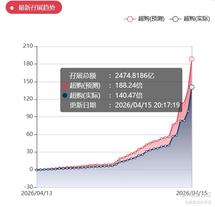 目前孖展来到140.47倍,资金回流后,孖展爬升迅速,预估能去到450倍,冻资约7800亿,但是按照前面3个IPO的冻资情况来看,冻资额接近8500亿来看,或许450倍还不止;只能说,又要卷了。