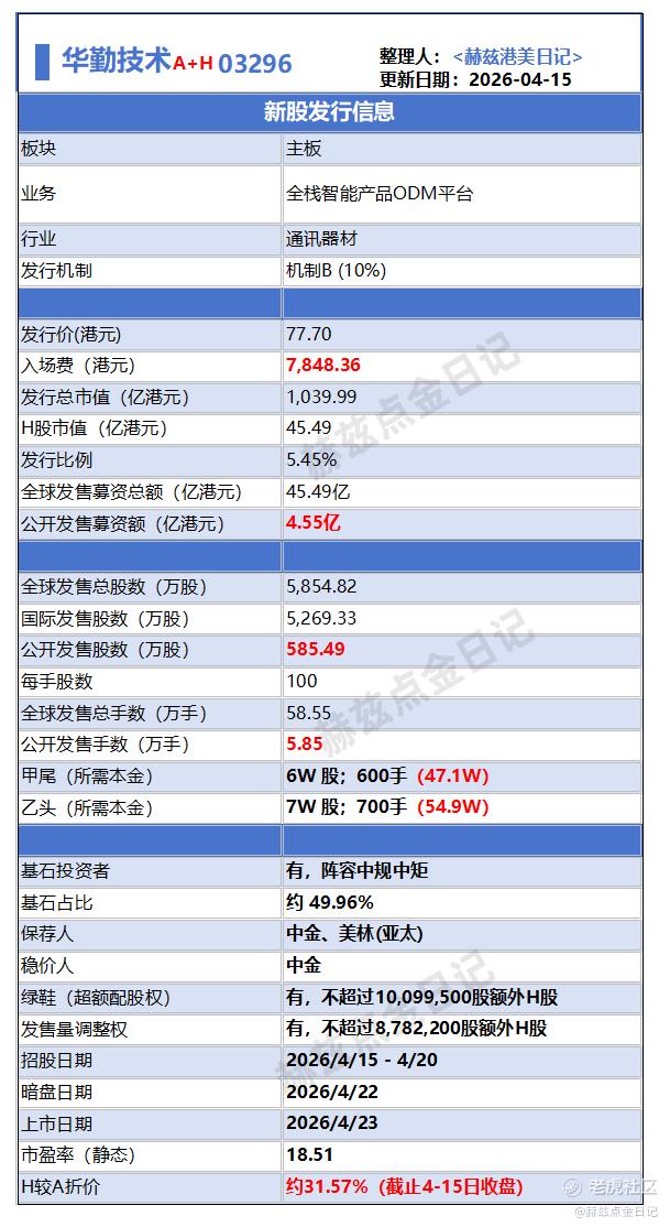 今天又上来一家A+H的IPO,华勤技术,具体的分析文章正在写着了。
