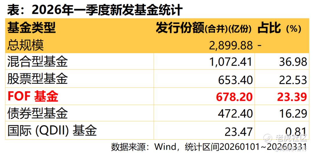 这是一季度新发基金的数据,可以看到,一向不温不火的FOF,今年简直异军突起。一季度发行678亿份,是去年同期的3倍多!占比高达23%,一举超过股票型基金。同时,在市场热度不高的情况下,成了资金关注的焦点。