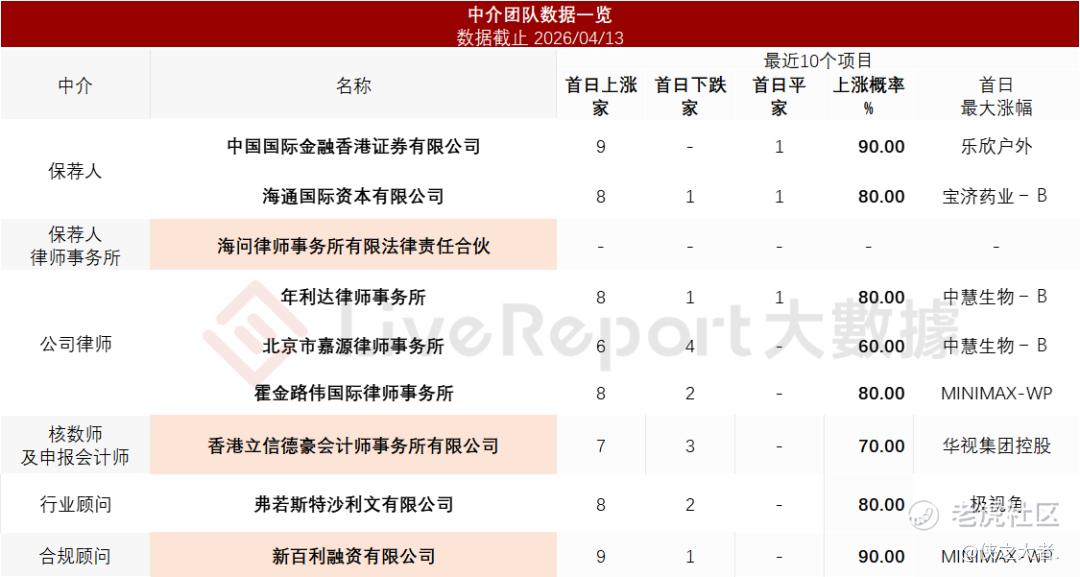 据**大数据统计,晶晨股份中介团队共计9家,其中保荐人2家,近10家保荐项目数据整体表现优秀;公司律师共计3家,综合项目数据整体尚可。整体而言中介团队历史数据表现不错。