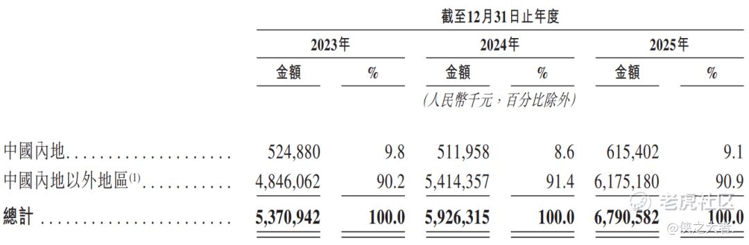 从地域看,公司收入绝大部分来自海外,2025年中国内地收入占比仅9.1%,中国内地以外市场收入占比达90.9%,海外市场为主要收入阵地。