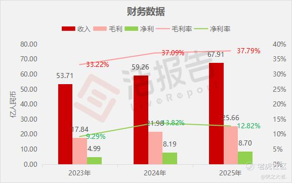 收入分别约为人民币53.71亿、59.26亿、67.91亿,2025年同比+14.58%;