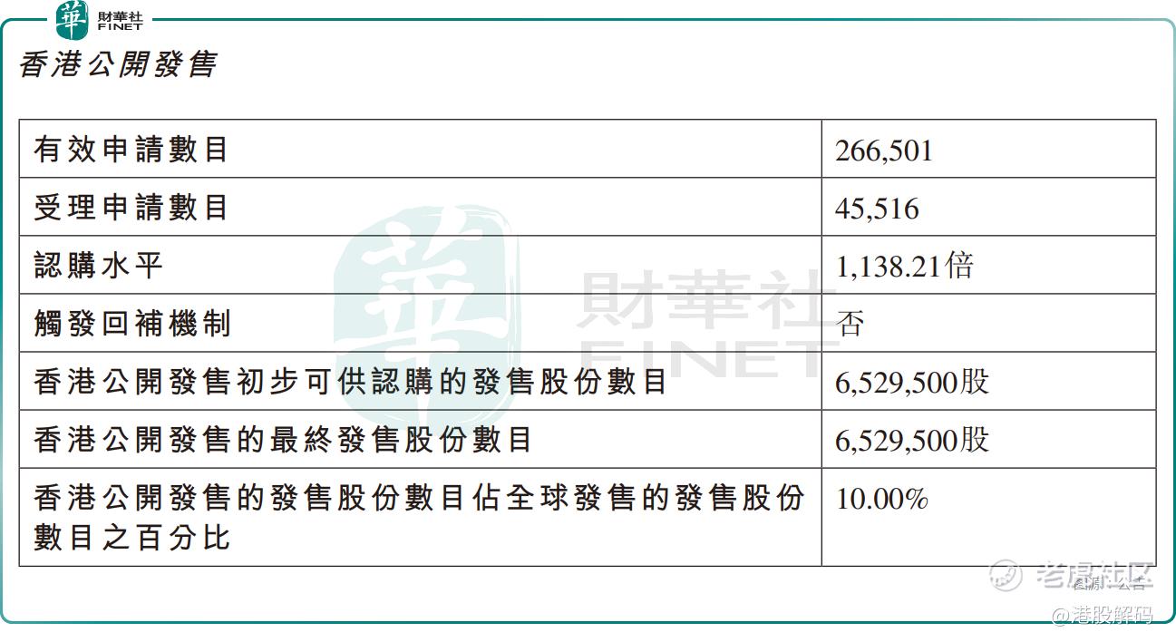 从日前招股阶段的表现来看,香港公开发售方面,长光辰芯获1138.21倍认购,公开发售的股份最终数目为652.95万股,占发售股份总数的10%。合计获得约26.65万份有效申请,受理申请数目约4.55万份,一手中签率仅1%。