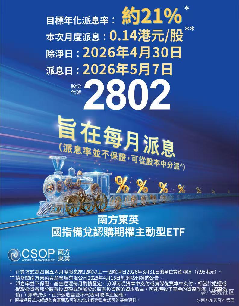 $A南方国指备兑(02802)$ 本次月度派息:💰0.14港元/股。
