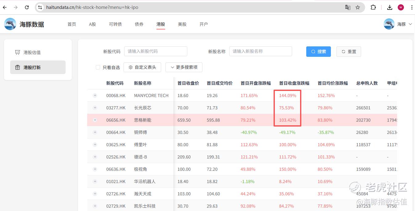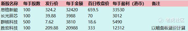 四月份的这一波港股打新,打出了一波小高潮,从 $思格新能(06656)$ 开始,到今天暗盘的 $胜宏科技(02476)$ 。从下图可以看到,前面三只已经上市的,首日涨幅都很夸张,两只涨幅超过100%: