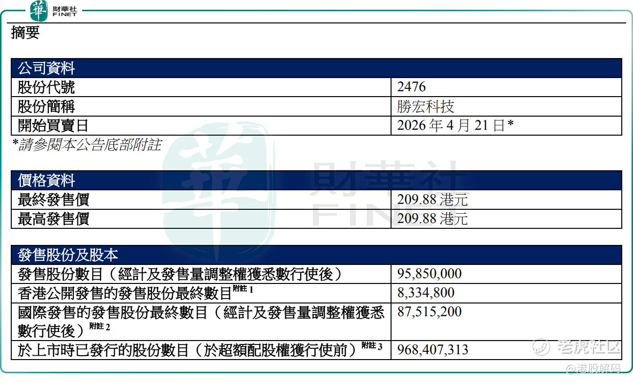 4月21日, $胜宏科技(02476)$ 成功于港交所挂牌上市,港股新股、A+H阵营再扩容。