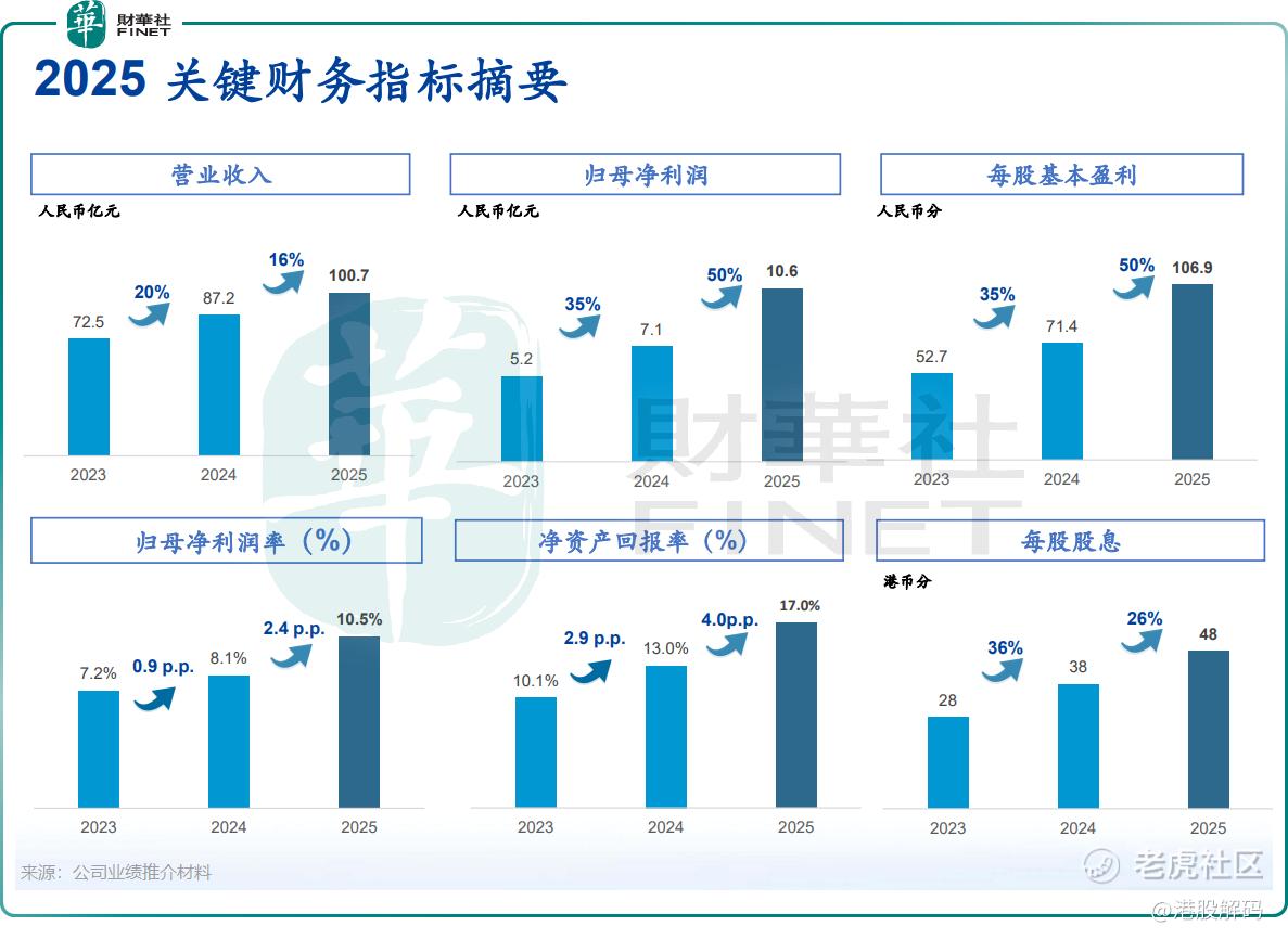 2025年,公司实现营收100.74亿元(单位人民币,下同),同比增长16%,首次突破百亿大关;纯利10.58亿元,同比大增50%,创下历史最佳水平,这一成绩足以让大多数港股制造业公司羡慕。