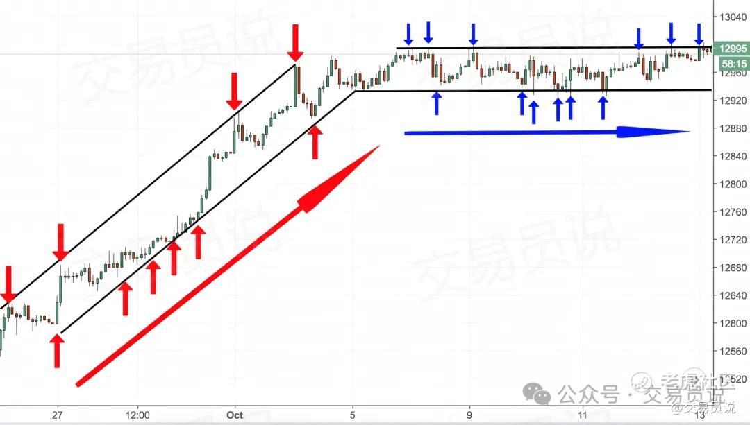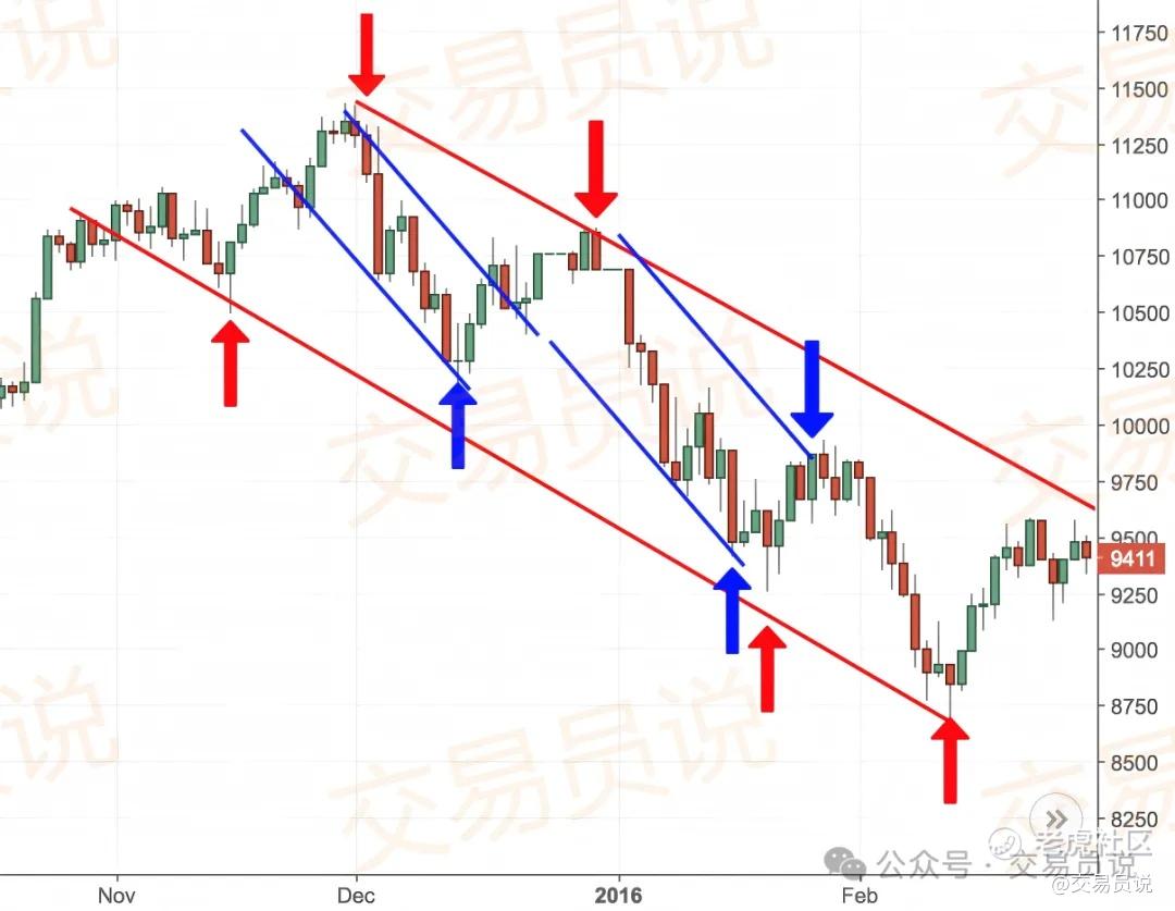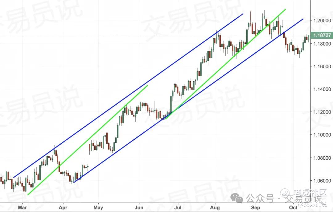 在上图中,你有两个通道。在下面的内容中,我们将更详细地阐述它们。这里需要记住的重要一点是,价格通常在可以用平行线标示的通道内运行。
