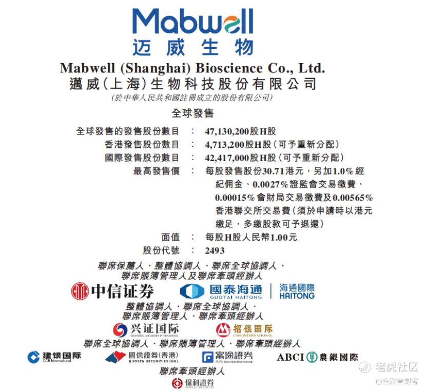 具体到打新操作层面:迈威生物-B(02493.HK)拟全球发售4713.02万股H股,预期2026年4月28日挂牌上市,中信证券、国泰海通为联席保荐人。已有君实生物、桂林三金、药明生物等多家知名机构作为基石投资者认购。