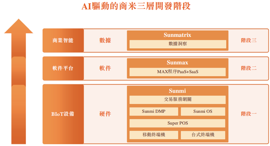商米还积极拥抱AI,建立了AI驱动的三层开发阶段,先通过智能硬件和自研SUNMI OS做作为入口,快速占领线下商业场景;再通过BIoT PaaS低代码平台开放生态,吸引开发者与商户共建软件应用,形成闭环;最终依托端云协同与AI数据能力,实现全场景数字化运营,从硬件销售升级为提供持续增值服务,从而构建一体化商业物联解决方案壁垒。