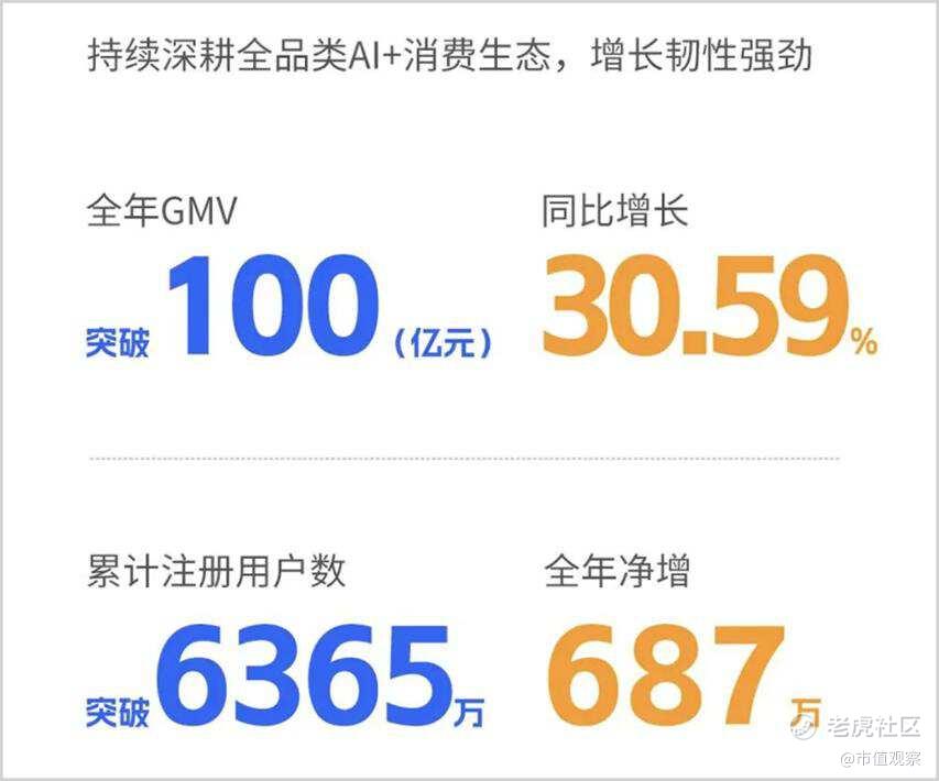 规模方面,业务基座消费电商平台GMV突破百亿关口,助力公司营收突破10亿元,注册用户超6365万,这三项指标均创历史新高。
