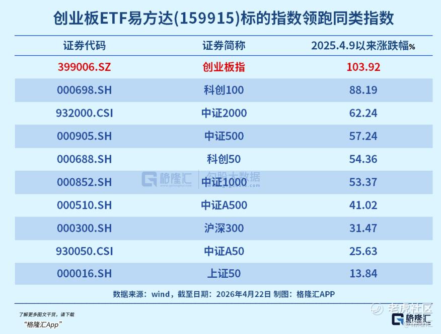 自2025年4月9日以来,创业板指涨幅103.92%,领涨宽基指数。