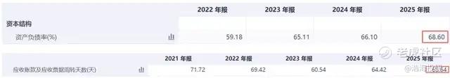 2025年资产负债率升到68.60%,同比继续上行,流动比率只有1.15,速动比率同样是1.15,安全垫不算厚;同时,应收账款周转天数65.64天,资金占用压力并不轻。
