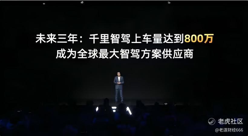 赵明在会上公布了千里智驾颇为进取的上车目标:截至3月31日,已有46万辆车辆搭载千里科技的智驾技术,辅助驾驶激活率达到92%。公司预计,到2026年底,搭载千里ASD的车辆将达到100万—130万辆;2027年新增270万—330万辆;2028年新增350万—400万辆。未来三年累计上车量目标为800万辆,千里科技也借此提出,要成为全球最大的智能驾驶解决方案供应商。