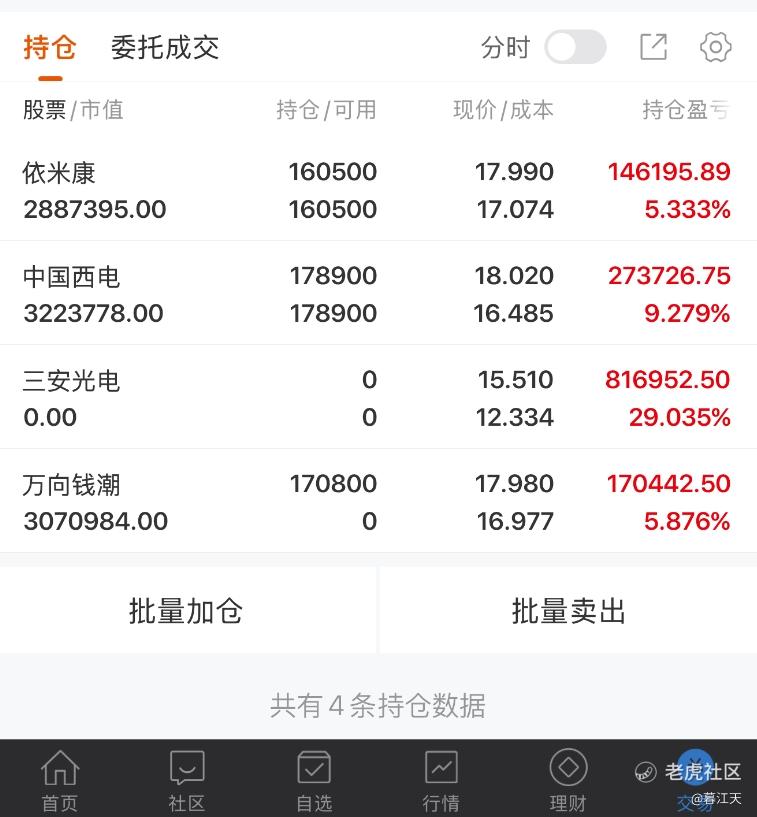 今天再次出现了阴跌,整体盘面很弱,白酒板块走到了涨幅榜的前面,这个板块居前就说明情绪偏谨慎了,跌停达到了近期最多,后面还有几天的财报窗口期,跌停数量可能还会保持在较多的量级,这个阶段对于财报较差的公司,如果是在高的,就要谨慎了,如果是在低的,那等整体偏空情绪过了以后,看有没有修$中国西电(601179)$ $三安光电(600703)$ $依米康(300249)$ $中贝通信(603220)$ $万向钱潮(000559)$