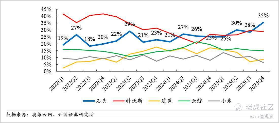 按照IDC的统计,石头科技2025年市场份额达到24.1%,其中,第四季度的份额更是抬升到30.1%。