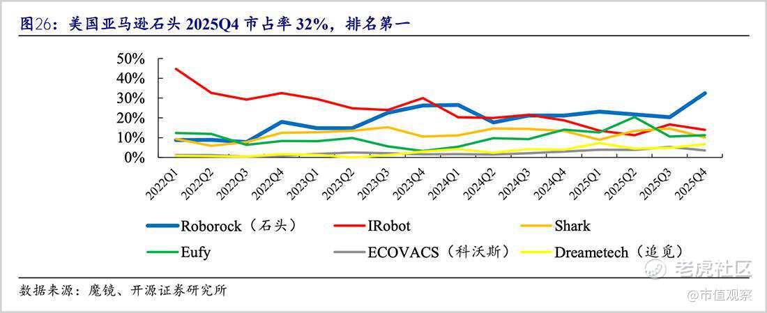2025年,公司在核心市场继续高歌猛进。以美国为例,黑五期间,石头北美扫地机全渠道销量21万台,同比大增58%;线上渠道方面,在亚马逊劲增63%,市占率高达40%;线下渠道也不例外,扫地机KA渠道霸榜TOP3。