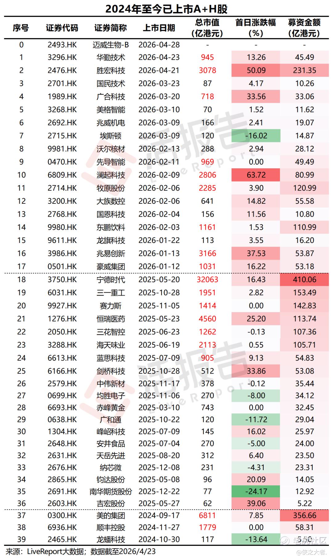 4月23日,港股市场迎来今年第17只A+H新股——华勤技术(3296.HK)正式登陆港交所,联席保荐人为中金、美林。