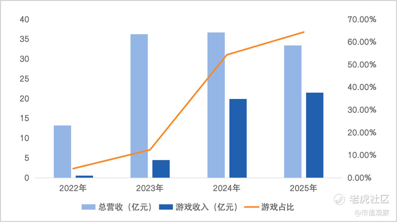 据财报显示,2025年,中国儒意全年营业收入为33.43亿元,经调整净利润达19.63亿元,同比大幅增长84%,净利润扭亏为盈至17.86亿元。其中,游戏服务收入21.49亿元,收入占比从54.26%提升至64.28%,不仅是拉动业绩增长的主力军,也已取代影视成为基本盘。
