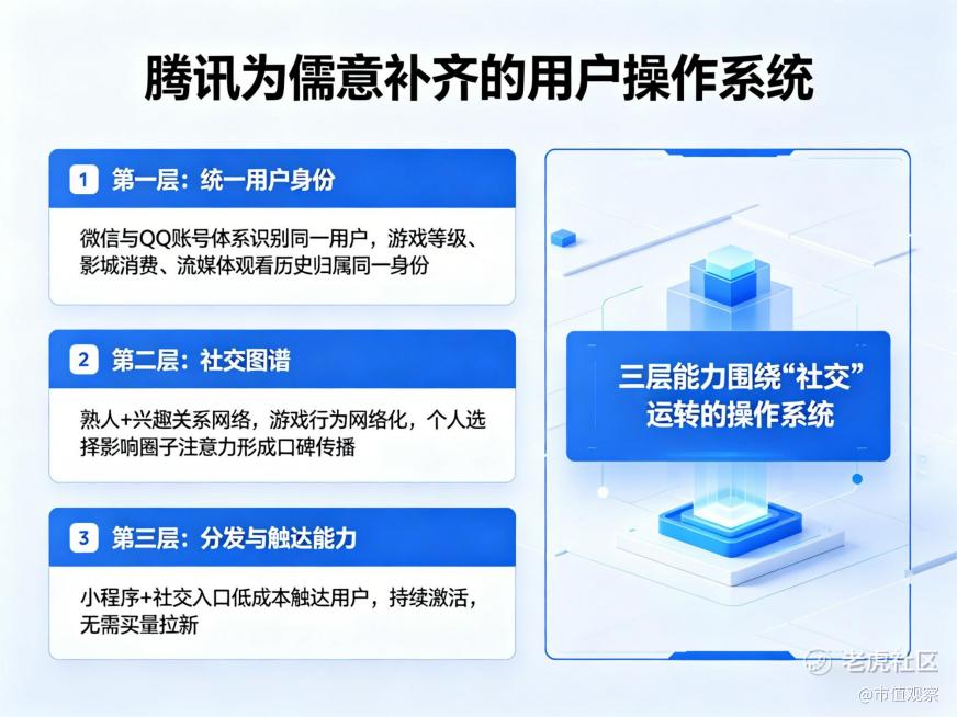 第一层是统一用户身份,微信与QQ账号体系让同一个用户在不同产品中被识别为同一个人,他在游戏里的等级、在影城的消费记录、在流媒体上的观看历史,全部归属于同一个身份,这使得行为具备了长期连续性。