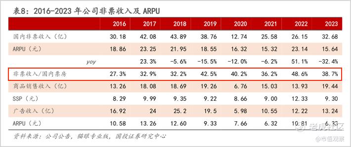 ▲2016-2023年万达电影非票收入及ARPU,图源:小牛行研